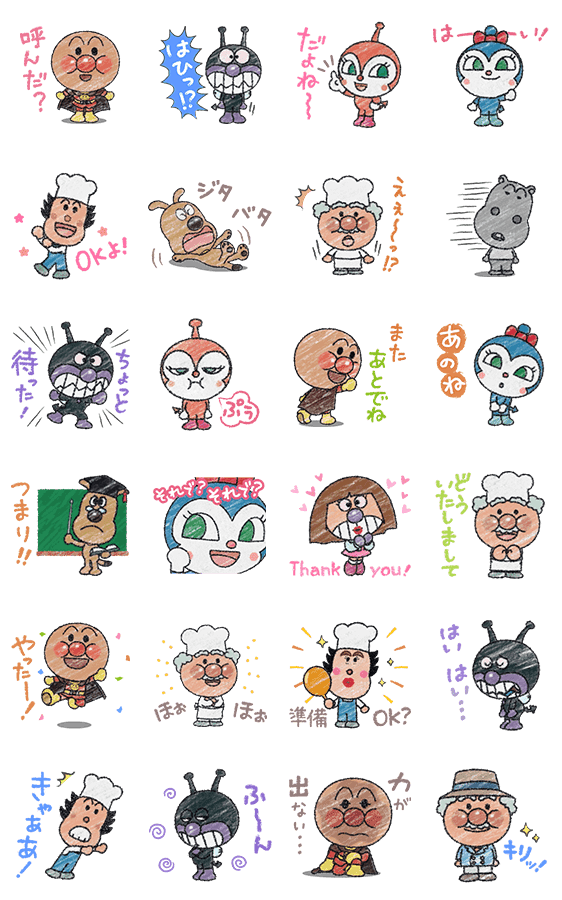 かわいい ぷちアンパンマンクレヨンタッチ 漫画 アニメキャラクターのlineスタンプを紹介 スマホ情報は アンドロック